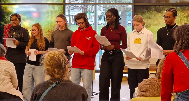 Accompagné·es tout au long de l’année par la metteuse en scène Clara Chabalier et le comédien Jessim Belfar, ils et elles travaillent à cette occasion sur le texte de Béatrice Bienville, C’est là que mon nombril est enterré, enquête intime et intergénérationnelle à travers l’histoire de la Guadeloupe et de la famille de l'autrice.