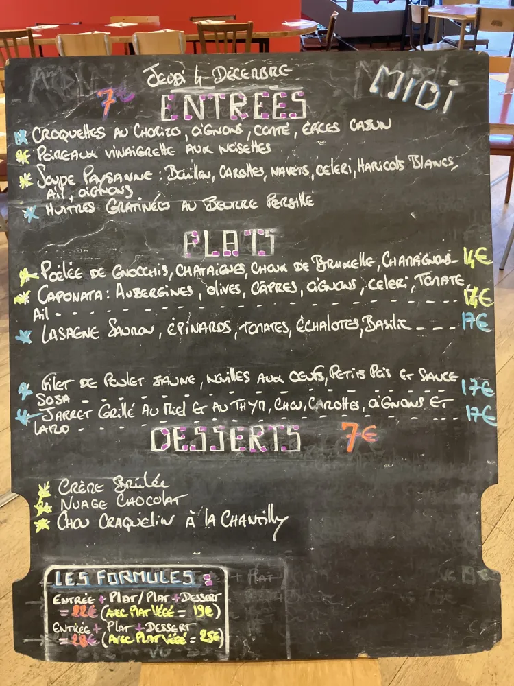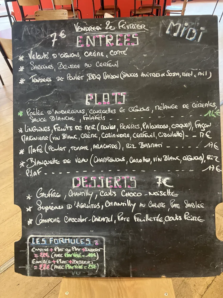 Côté restauration, des produits frais, une cuisine à l'ardoise, un plat végétarien par jour. Côté bar, des bières Demory brassées à Bobigny, les boissons artisanales et bios UMÀ provenant de Pantin, et une sélection de vins bios.