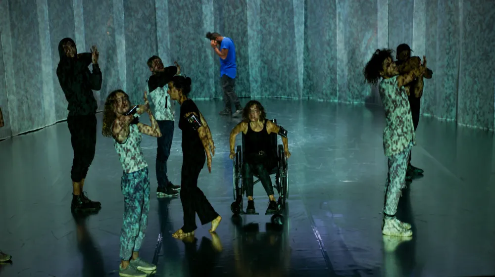 Deux textes d'auteurs contemporains dont s'emparent douze jeunes interprètes pour ce qui est leur dernier travail d'école (ENSAD) et leur premier spectacle professionnel. Ils livrent deux regards complémentaires sans concession sur le monde qui les entoure pour y remettre « l'humain » avec la force et le talent d'une jeunesse engagée et combative.